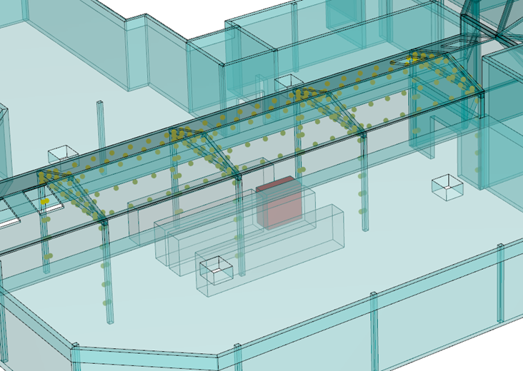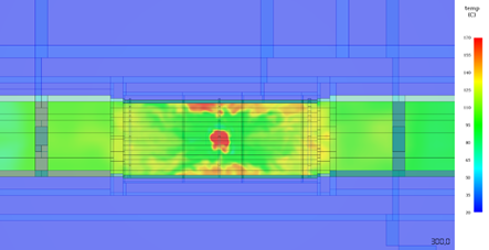 La soluzione alternativa adottata ha garantito la sicurezza delle strutture senza costi aggiuntivi, ottimizzando l’utilizzo dell’impianto sprinkler esistente per gestire la potenza termica dell’incendio. Attraverso l’attivazione tramite IRAI, l’impianto EFC naturale è stato impiegato per evacuare i prodotti della combustione, mantenendo basse le temperature sugli elementi strutturali, senza necessità di nuove installazioni.